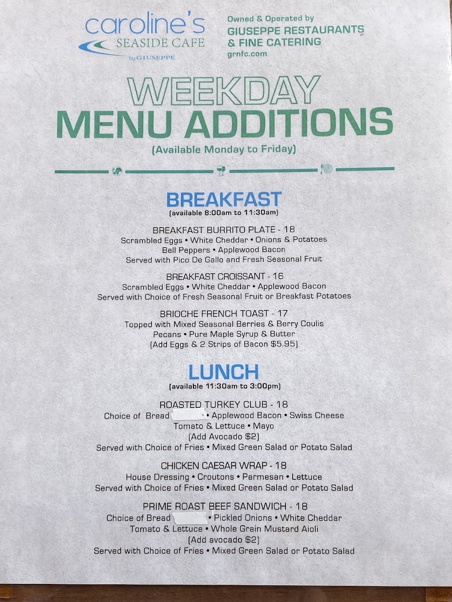 In a perfect location, Caroline's Seaside Cafe by Giuseppe is more than just a cafe; it's a beloved local treasure that offers a fusion of extraordinary views and mouthwatering food. Whether you're a local or just passing through, make sure to come hungry and ready to indulge. Don't miss out on this La Jolla staple that captures the essence of coastal living!